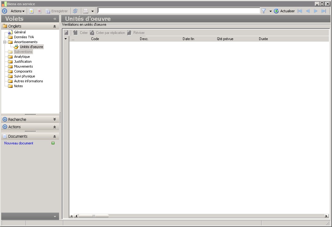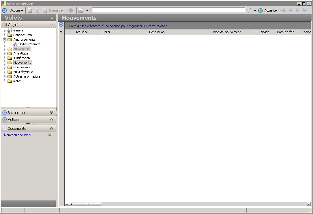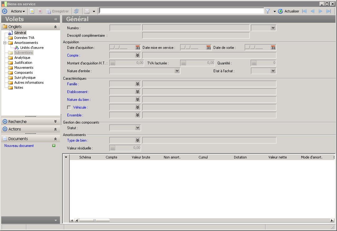 (Sage FRP 1000 Comptabilité) Menu Immobilisations > Suivi comptable > Biens > Biens en service