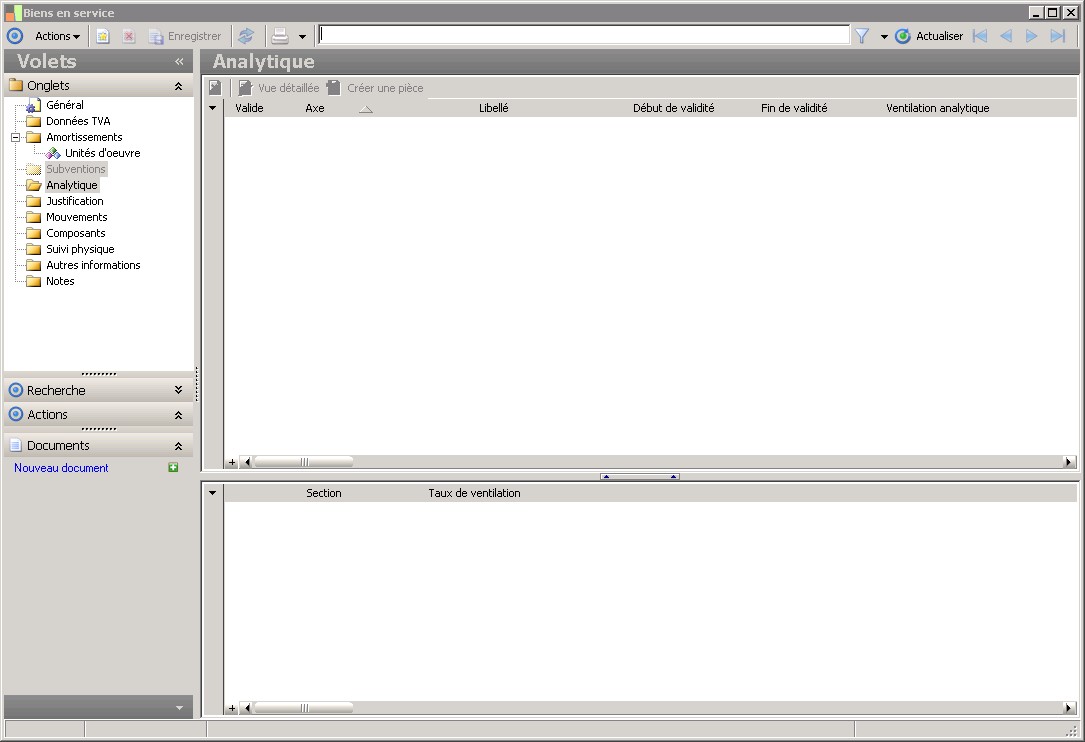 Tant que la pièce analytique n'est pas validée, la section analytique peut être actualisée :- par toute modification intervenant sur une information du bien, qui participe à la constitution de la section analytique (quand l'axe analytique lié est en constitution automatique),- ou par une modification de la section analytique saisie (quand l'axe analytique lié n'est pas en constitution automatique). |