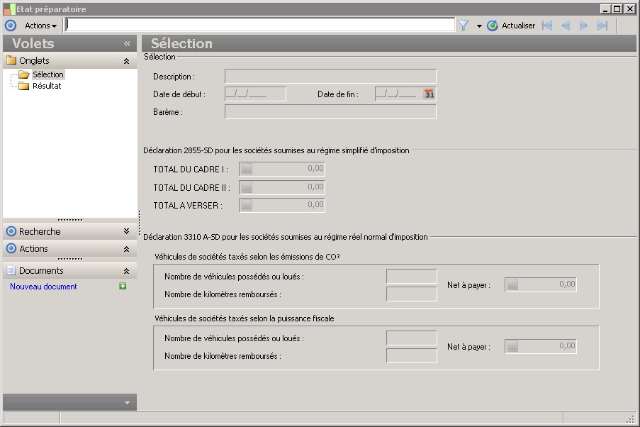 (Sage FRP 1000 Comptabilité) Menu Immobilisations > Véhicules > Etat préparatoire