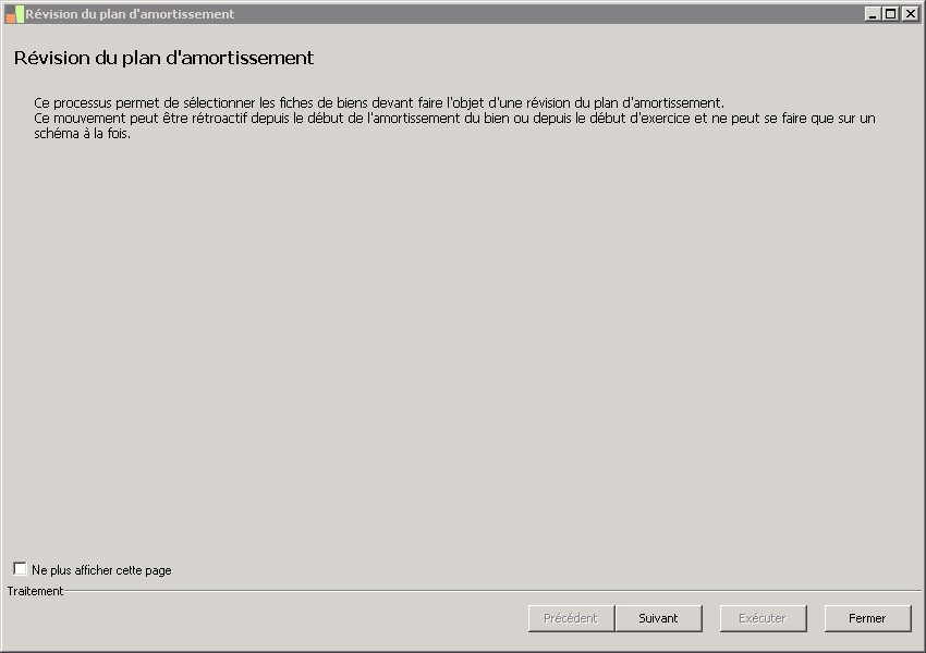 (Sage FRP 1000 Comptabilité) Menu Immobilisations > Suivi comptable > Plan d'amortissement > Révision du plan d'amortissement