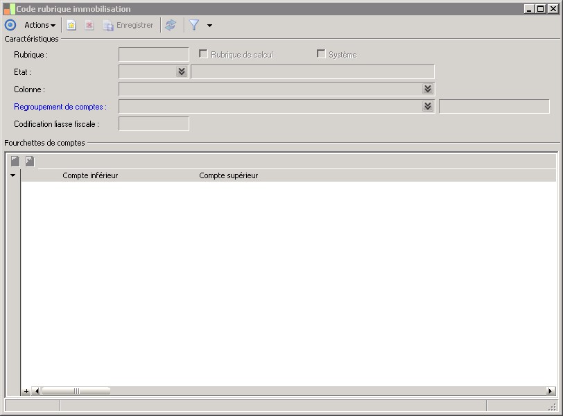 (Sage FRP 1000 Comptabilité) Menu Immobilisations > Fichiers de base > Rubriques > Code rubrique immobilisation