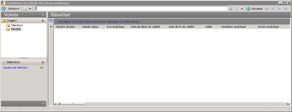 (Sage FRP 1000 Comptabilité) Menu Immobilisations > Suivi comptable > Analytique > Consultation des détails des pièces analytiques
