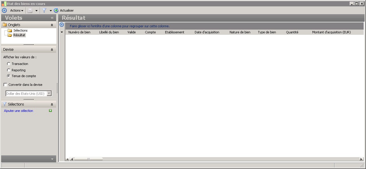 Il est possible de sélectionner la devise du montant. Par défaut, c'est la devise de tenue de compte qui est présentée. |