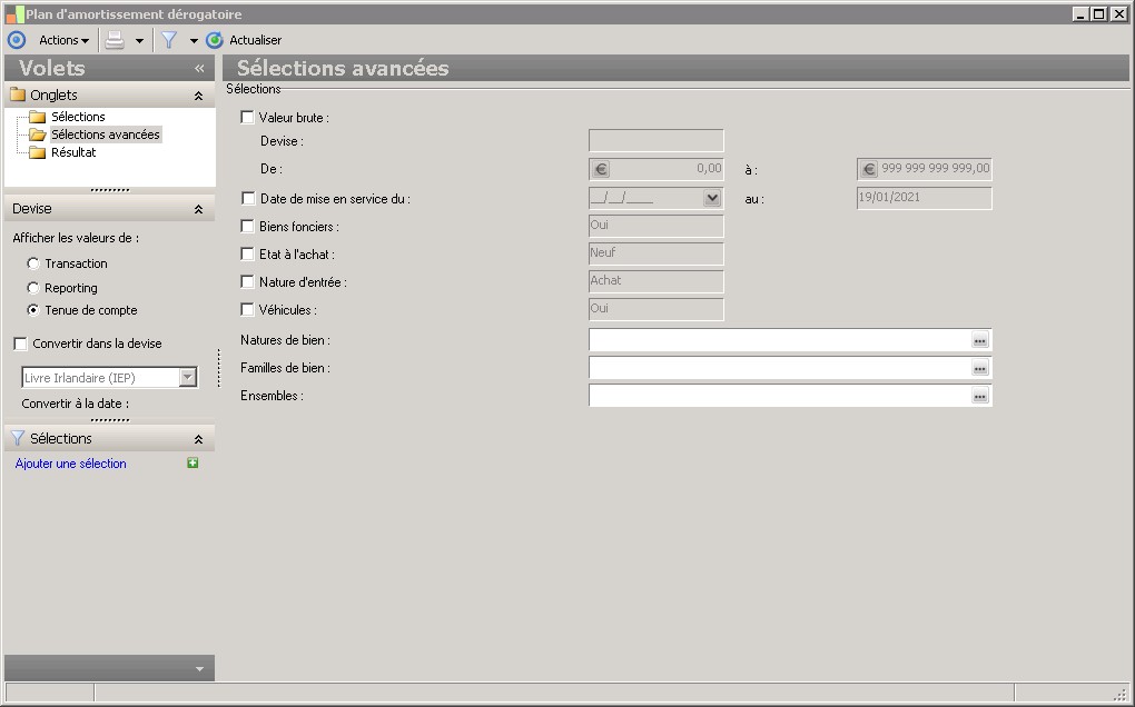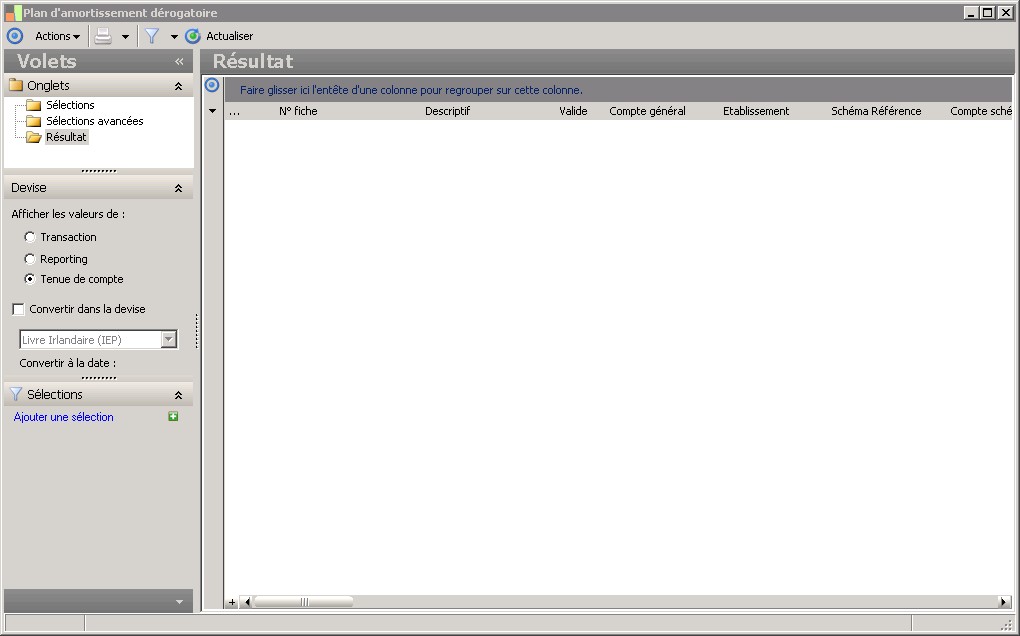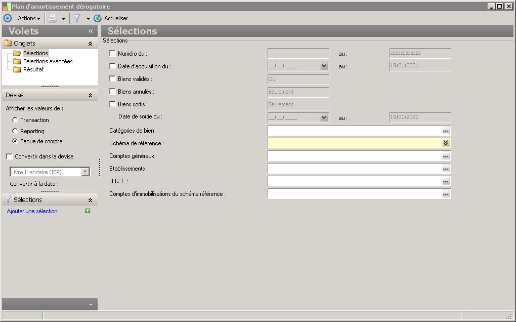Il s'agit du schéma d'amortissement servant de référence pour le calcul du dérogatoire. La sélection du schéma de référence est obligatoire. |