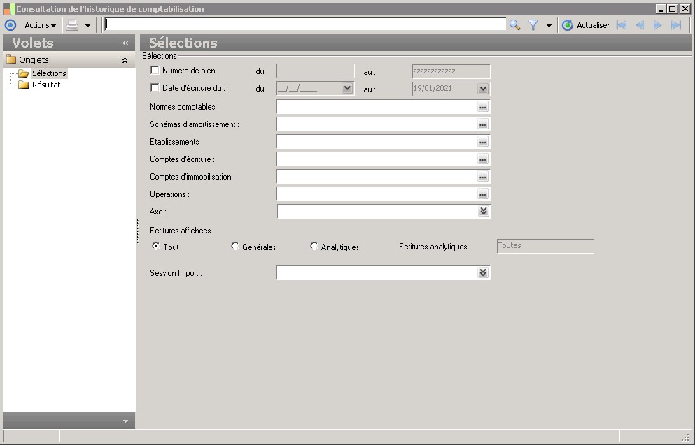 Ces radios boutons vous permettent d'indiquer si vous voulez afficher toutes les écritures (qu'elles soient générales ou analytiques), seulement les écritures générales ou seulement les écritures analytiques. |