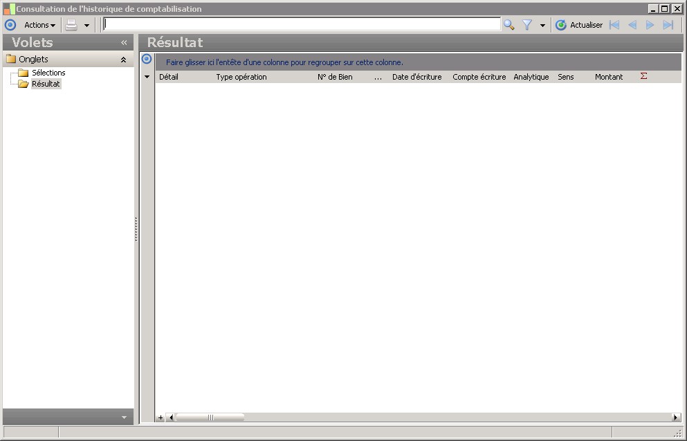 (Sage FRP 1000 Comptabilité) Menu Immobilisations > Arrêtés comptables > Consultation de l'historique de comptabilisation