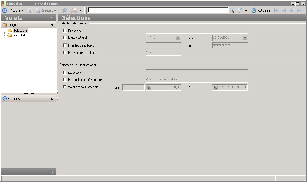 Il est possible de sélectionner une méthode de réévaluation (si la case est cochée). |