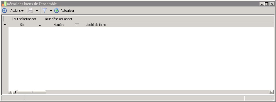 (Sage FRP 1000 Comptabilité) Menu Immobilisations > Fichiers de base > Immobilisations > Détail des biens de l'ensemble