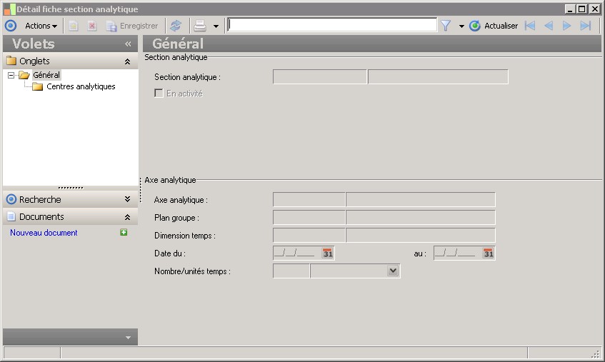 (Sage FRP 1000 Comptabilité) Menu Notes de Frais > Paramètres > Comptabilité analytique > Détail fiche section analytique