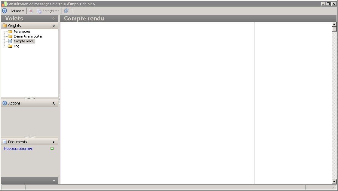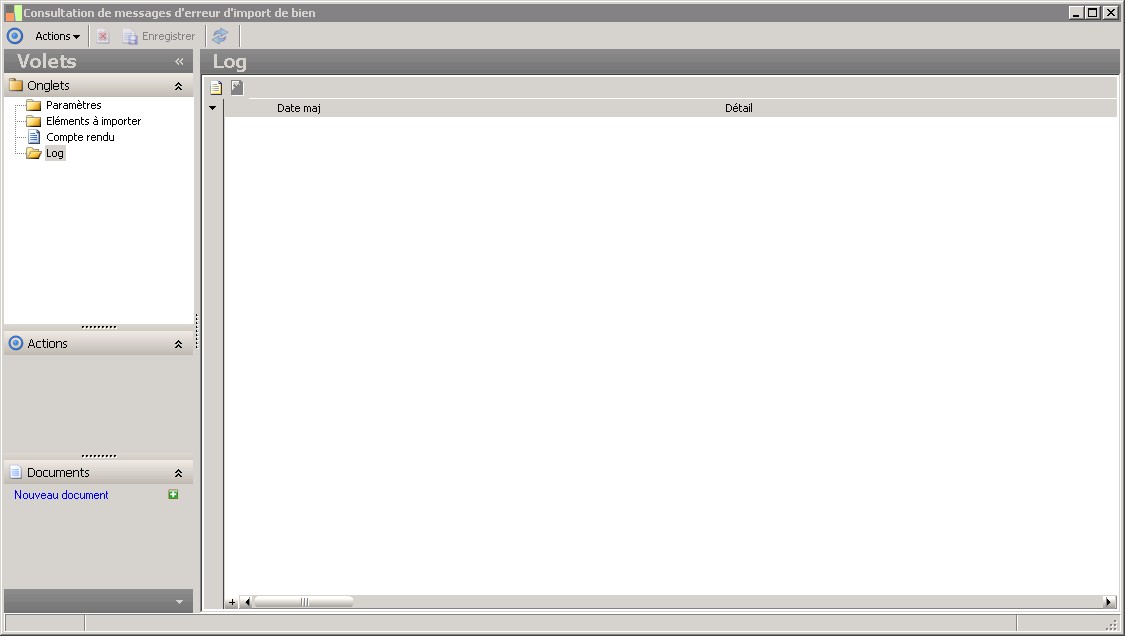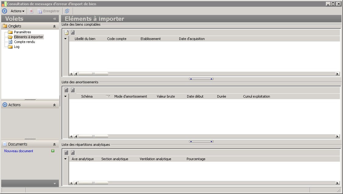 (Sage FRP 1000 Comptabilité) Menu Immobilisations > Initialisation > Import du suivi comptable > Consultation de messages d'erreur d'import de bien