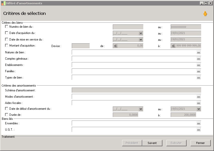 Ce paramètre permet de faire une sélection par date de début d'amortissement (si la case est cochée). |