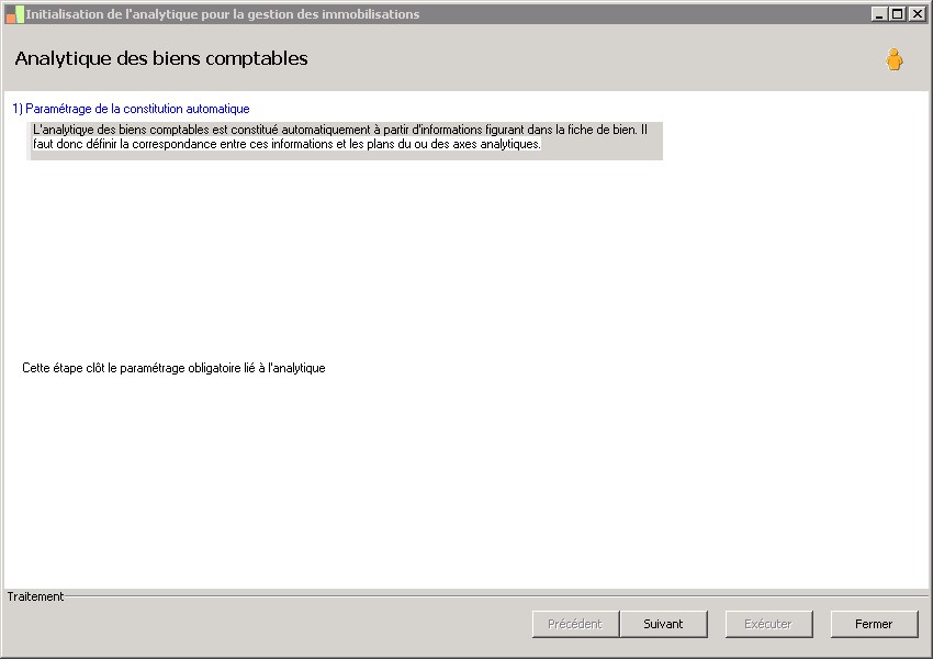 (Sage FRP 1000 Comptabilité) Menu Immobilisations > Initialisation > Initialisation de l'analytique pour la gestion des immobilisations