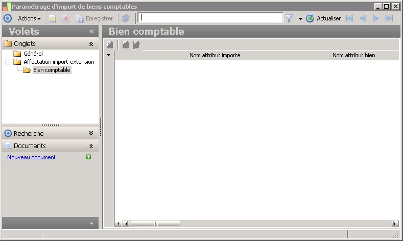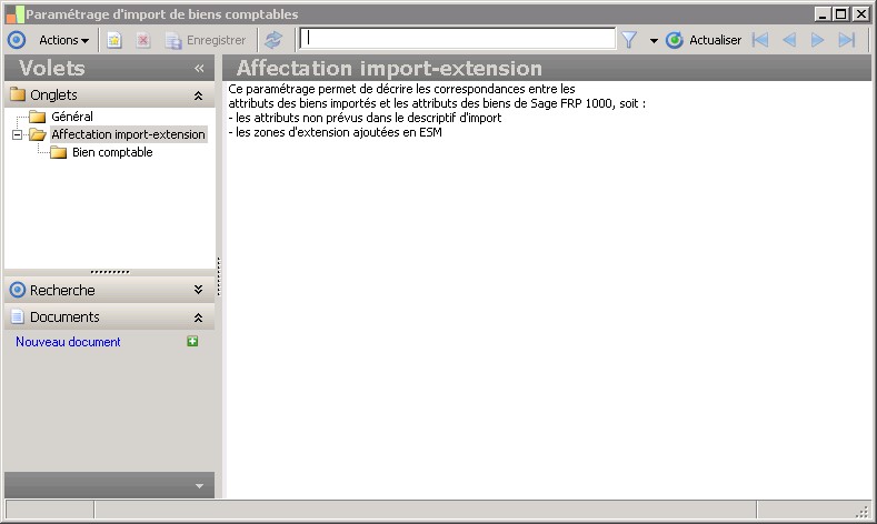 (Sage FRP 1000 Comptabilité) Menu Immobilisations > Initialisation > Import du suivi comptable > Paramétrage d'import de biens comptables