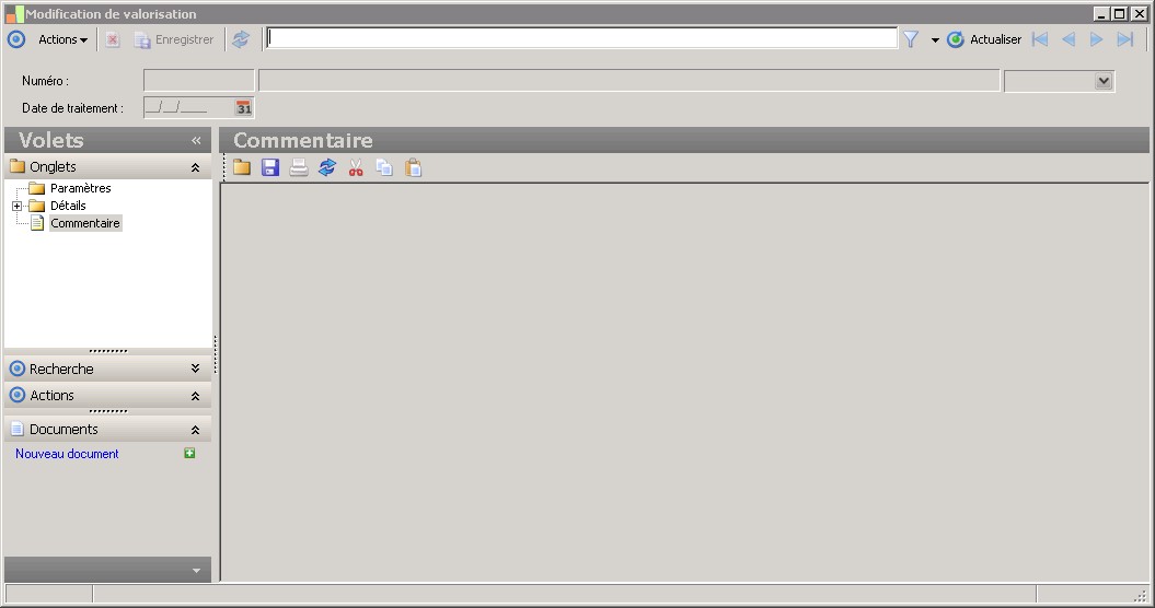 Cette zone indique le statut de validation de la pièce. Cette information n'est jamais saisissable et est modifiable via une action dédiée. |