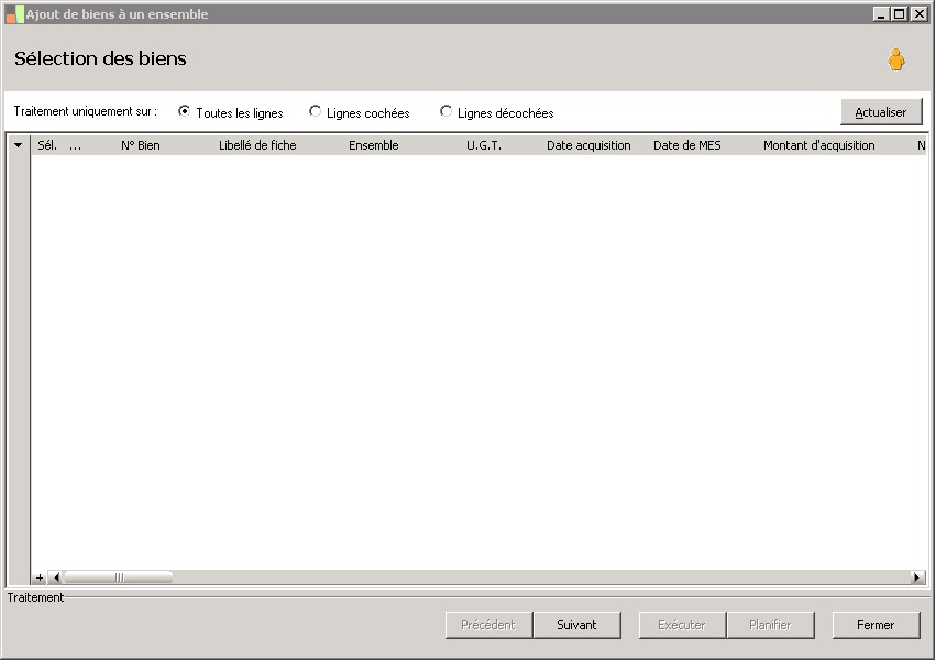 type de traitement : tous, sélectionné, non sélectionné. |