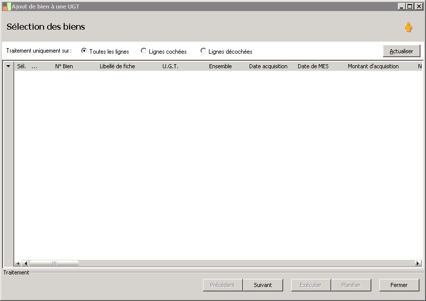 type de traitement : tous, sélectionné, non sélectionné. |