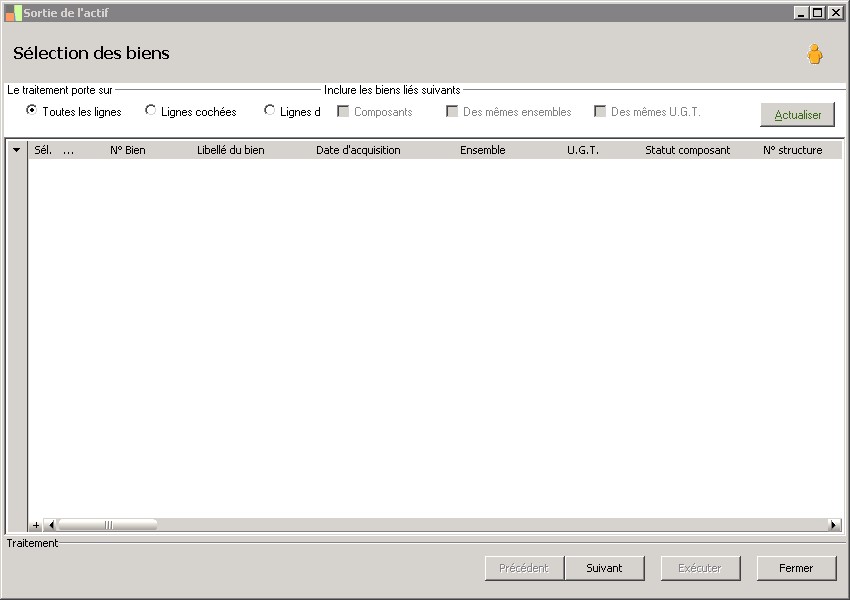 Cette option permet, lorsqu'elle est cochée, d'inclure les biens ayant la même Unité Génératrice de TRésorerie que le bien sélectionné. |
