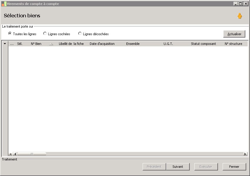 type de traitement : tous, sélectionné, non sélectionné. |