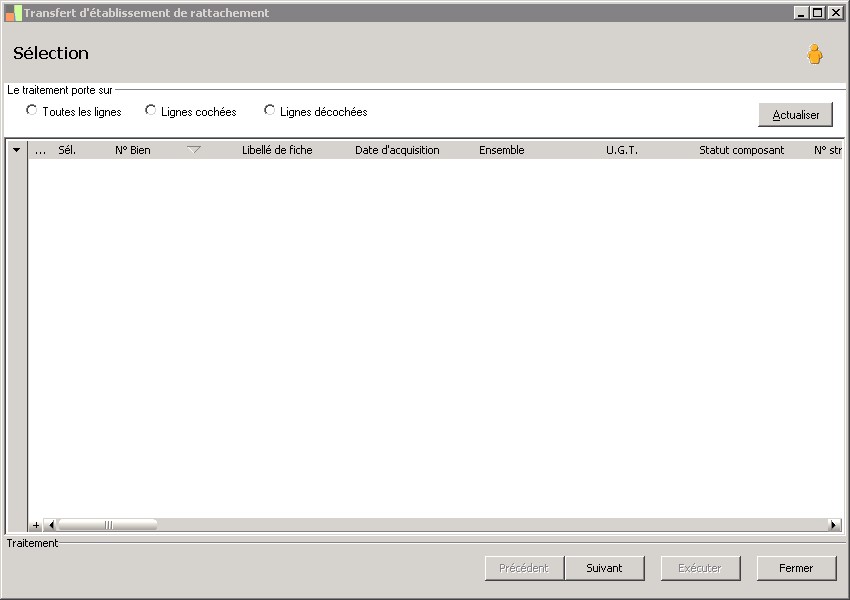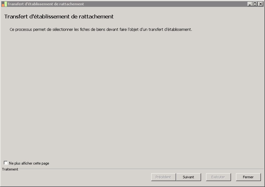 (Sage FRP 1000 Comptabilité) Menu Immobilisations > Suivi comptable > Etablissement > Transfert d'établissement de rattachement