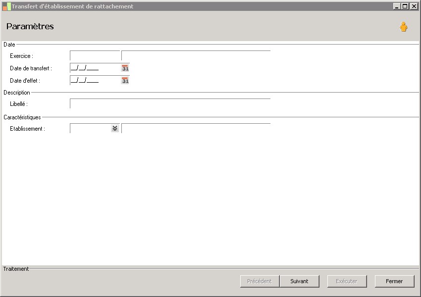 Cette zone permet de renseigner le libellé de la pièce de transfert d'établissement. |