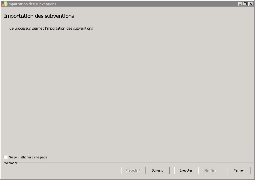 (Sage FRP 1000 Comptabilité) Menu Immobilisations > Initialisation > Import des subventions > Importation des subventions
