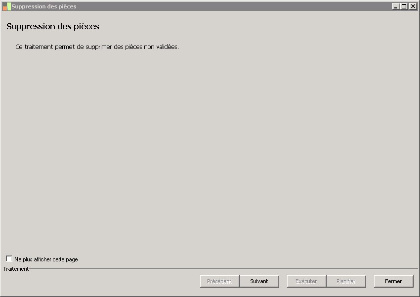 (Sage FRP 1000 Comptabilité) Menu Immobilisations > Suivi comptable > T.V.A. > Suppression des pièces