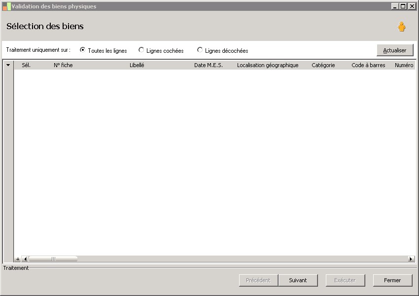Ce paramètre vous permet de limiter la sélection des biens afin d'afficher :- uniquement les biens inventoriables,- ou uniquement les biens non inventoriables. |