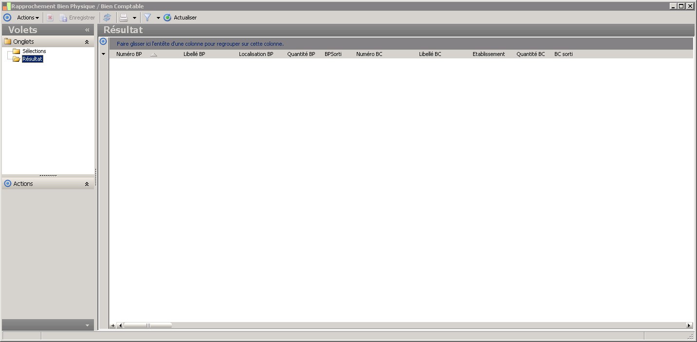 Cette zone permet de sélectionner les biens physiques valides ou non sortis. |
