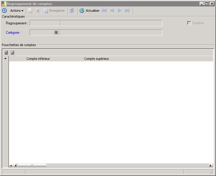 (Sage FRP 1000 Comptabilité) Menu Immobilisations > Fichiers de base > Rubriques > Regroupement de comptes