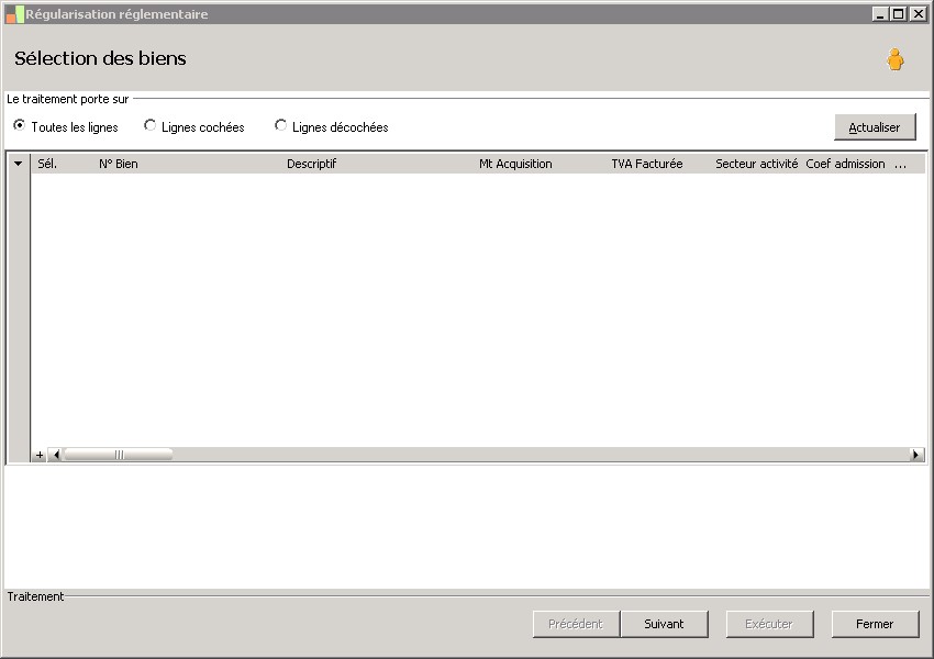 (Sage FRP 1000 Comptabilité) Menu Immobilisations > Suivi comptable > T.V.A. > Régularisation réglementaire