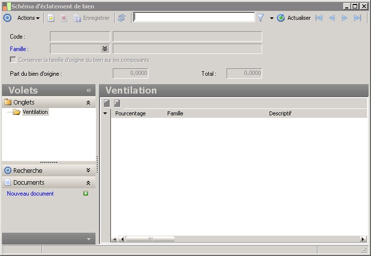 Cette zone non saisissable présente le total des pourcentages répartis entre le bien origine (bien structure) et les biens créés suite à l'éclatement (les biens composants).