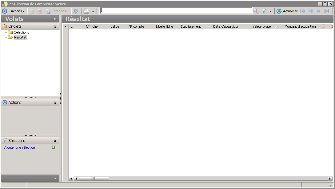 (Sage FRP 1000 Comptabilité) Menu Immobilisations > Suivi comptable > Consultation des amortissements