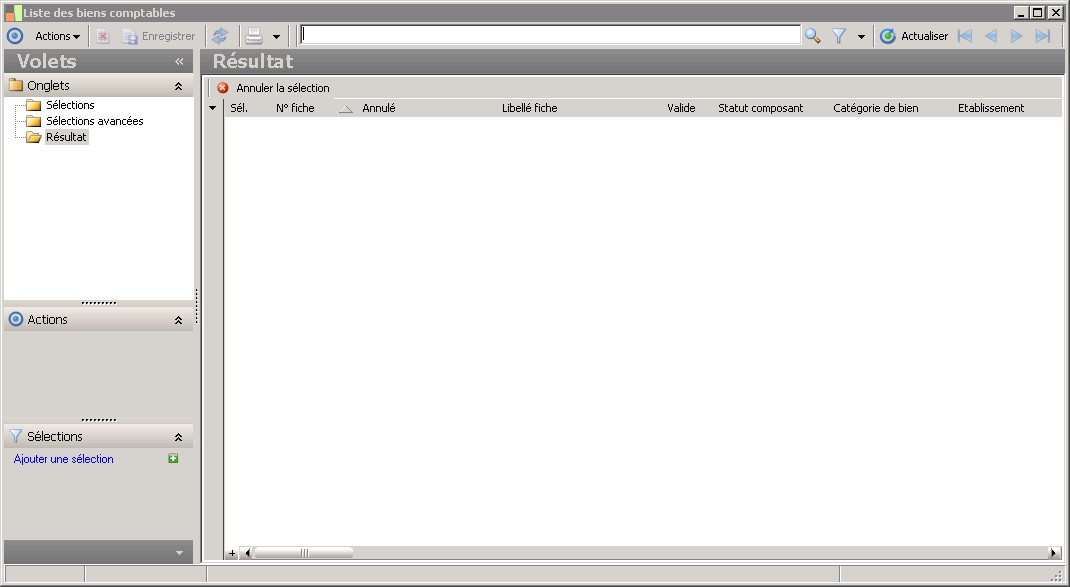 Il est possible de sélectionner dans cette zone un éclatement en composants. Vous obtiendrez ainsi, le bien à l'origine de l'éclatement ainsi que les biens créés suite à l'éclatement, c'est à dire les composants. |