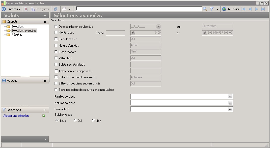 ce paramètre permet de lister les biens comptables qui font l'objet d'un suivi physique. |