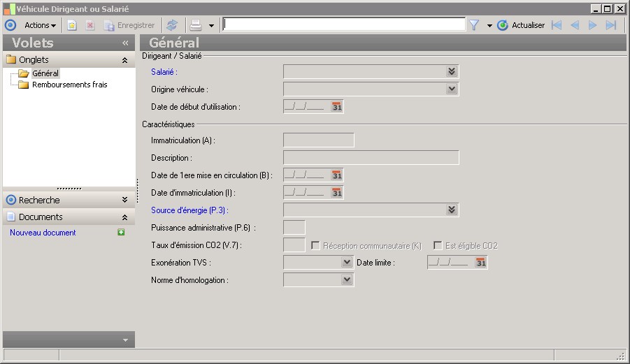 (Sage FRP 1000 Comptabilité) Menu Immobilisations > Véhicules > Véhicule Dirigeant ou Salarié