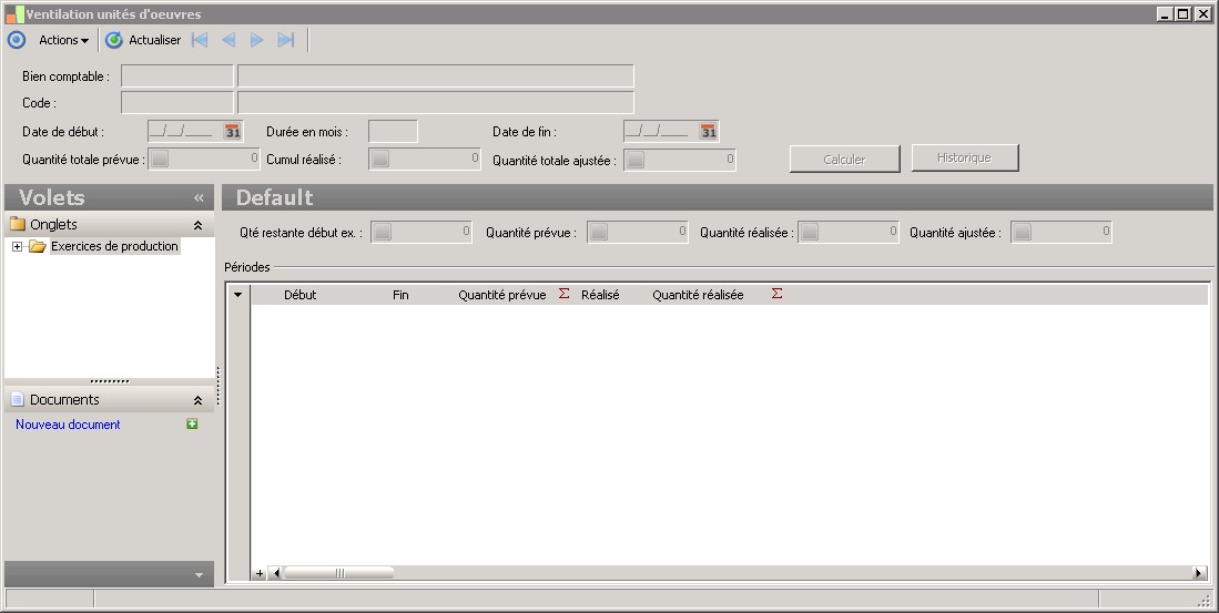 Pour chaque exercice ouvert, il est faut déterminer un nombre d'unités d'?uvre prévues pour chaque période ouverte. Il est également possible de saisir un nombre d'unités d'?uvre réalisées.