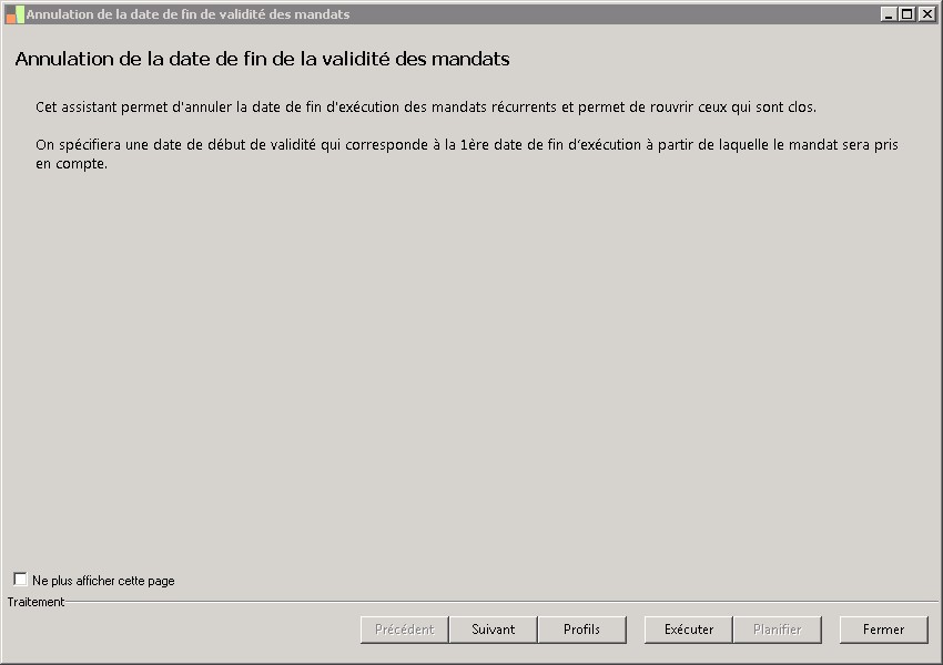 Date à partir de laquelle les dates de fin d'exécution des mandats seront supprimées. |