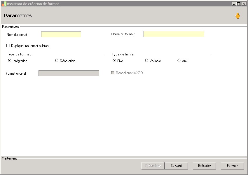 Spécifie le type de format (Plat, XML ...) |