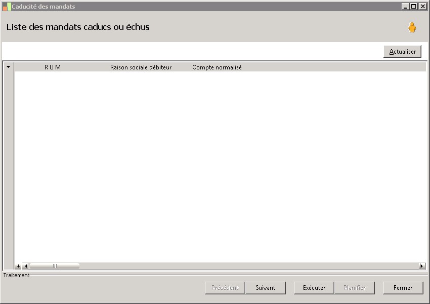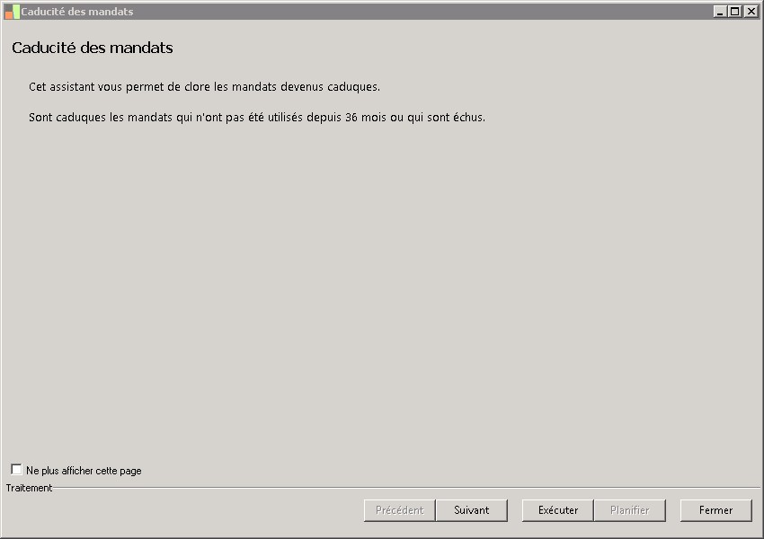 (Sage FRP 1000 Comptabilité) Menu Banque Paiement > Paramètres > Tiers > Caducité des mandats