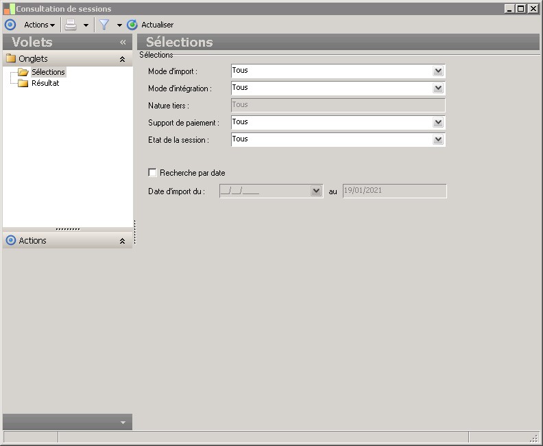 (Sage FRP 1000 Comptabilité) Menu Banque Paiement > Ordres bancaires > Consultation de sessions