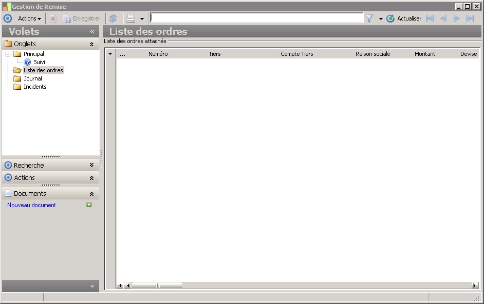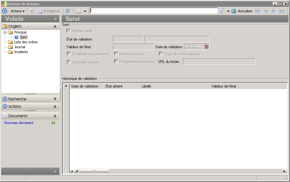Cette information indique que le document de la remise a été préparé.Lorsque la remise possède une règle de validation (et donc un circuit), le document est préparé à la validation du premier état. Lorsque la remise ne possède pas de règle de validation, le document est préparé à l'envoi de la remise.L'ajout d'ordres à une remise avec un document préparé est impossible sauf réinitialisation de celle-ci.La suppression d'une remise avec un document préparé n'est possible que dans le cadre du traitement d'épuration. |