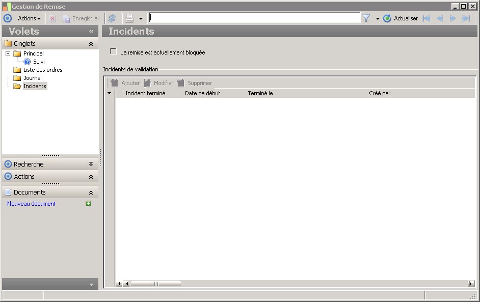 Cette information indique que la remise est bloquée du fait de l'existence d'incidents non terminés. |
