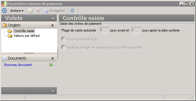 Cette zone permet d'indiquer un nombre de jours antérieurs à la date courante durant lequel la saisie des ordres de paiement pourra être réalisée |