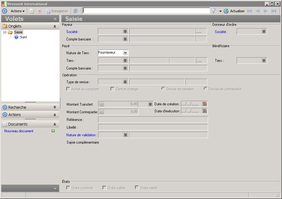 (Sage FRP 1000 Comptabilité) Menu Banque Paiement > Ordres bancaires > Virement International