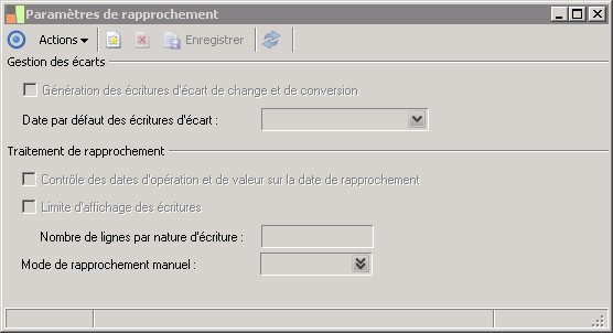 Cette option permet de générer ou non des écritures d'écart de change ou de conversion lors des traitements de rapprochement. |