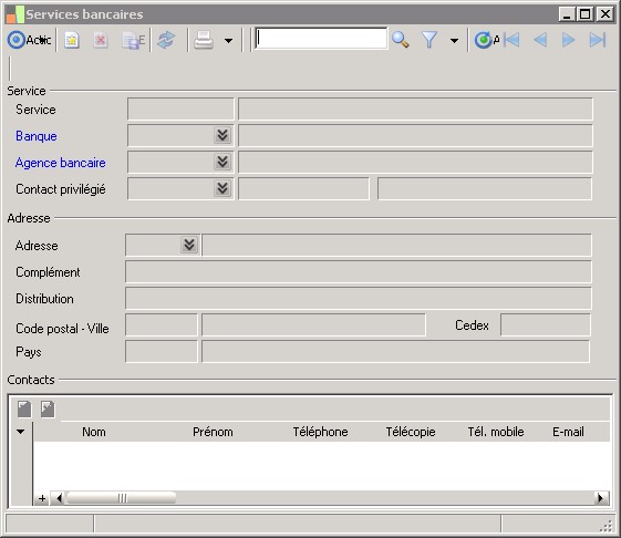 (Sage FRP 1000 Comptabilité) Menu Notes de Frais > Paramètres > Banques > Services bancaires