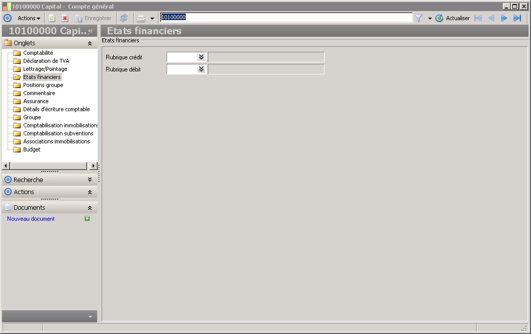 Cette zone permet d'indiquer si le compte est un compte d'immobilisations ou pas, et dans l'affirmative si c'est un compte d'immobilisations en cours ou d'immobilisations en service. |
