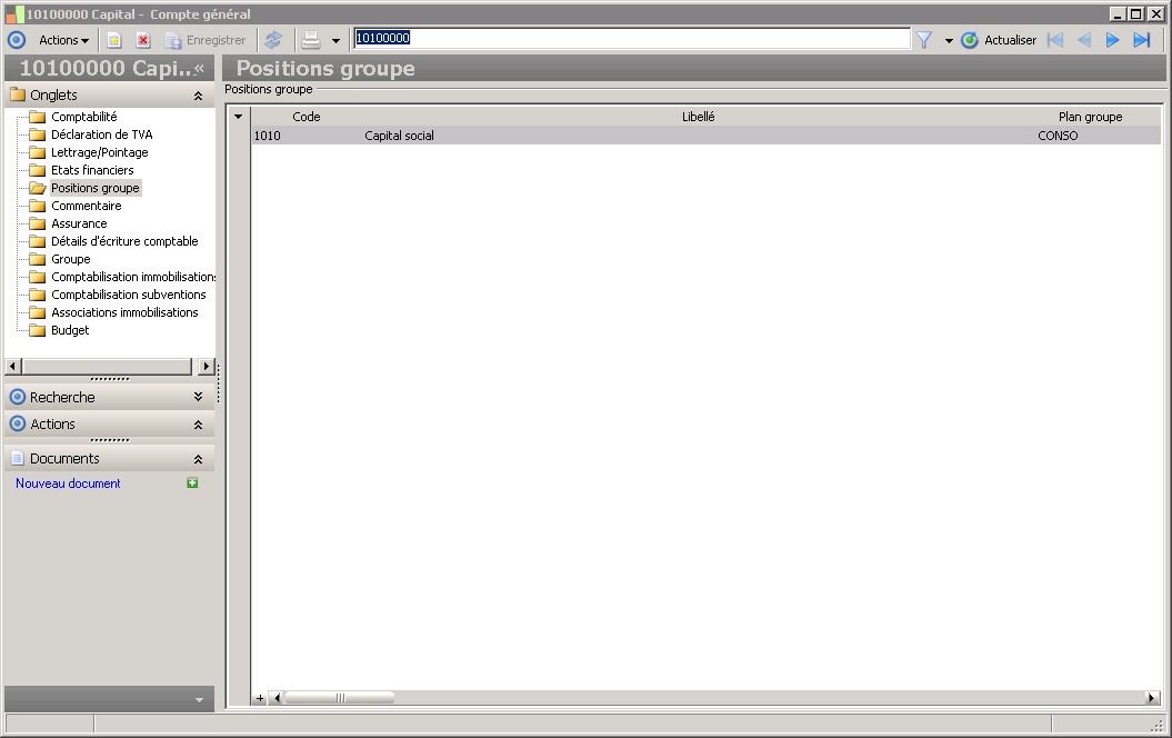 Le code permet d'identifier de manière unique un périmètre de groupe.On peut associer à un compte général à un ou plusieurs périmètres groupes. Ainsi, on pourra effectuer des éditions spécifiques par périmètre groupe (exemple : balance générale). |