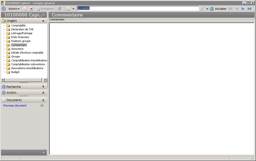 Cette zone permet de saisir un commentaire sur le compte sous forme de texte. |