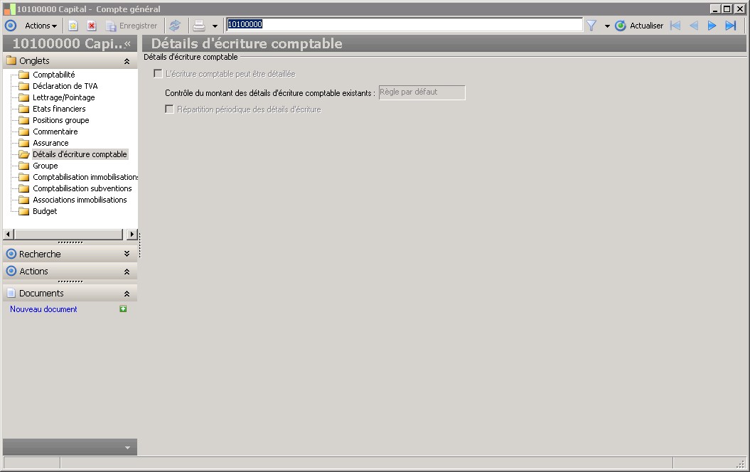 Cette zone autorise ou non la gestion de détails d'écriture sur les écritures comptables du compte : lorsque cette case est cochée, l'écriture comptable peut faire l'objet d'une saisie de détails d'écritures. Cette zone n'est accessible que si la gestion des détails d'écriture comptable est activée dans les paramètres comptables. |